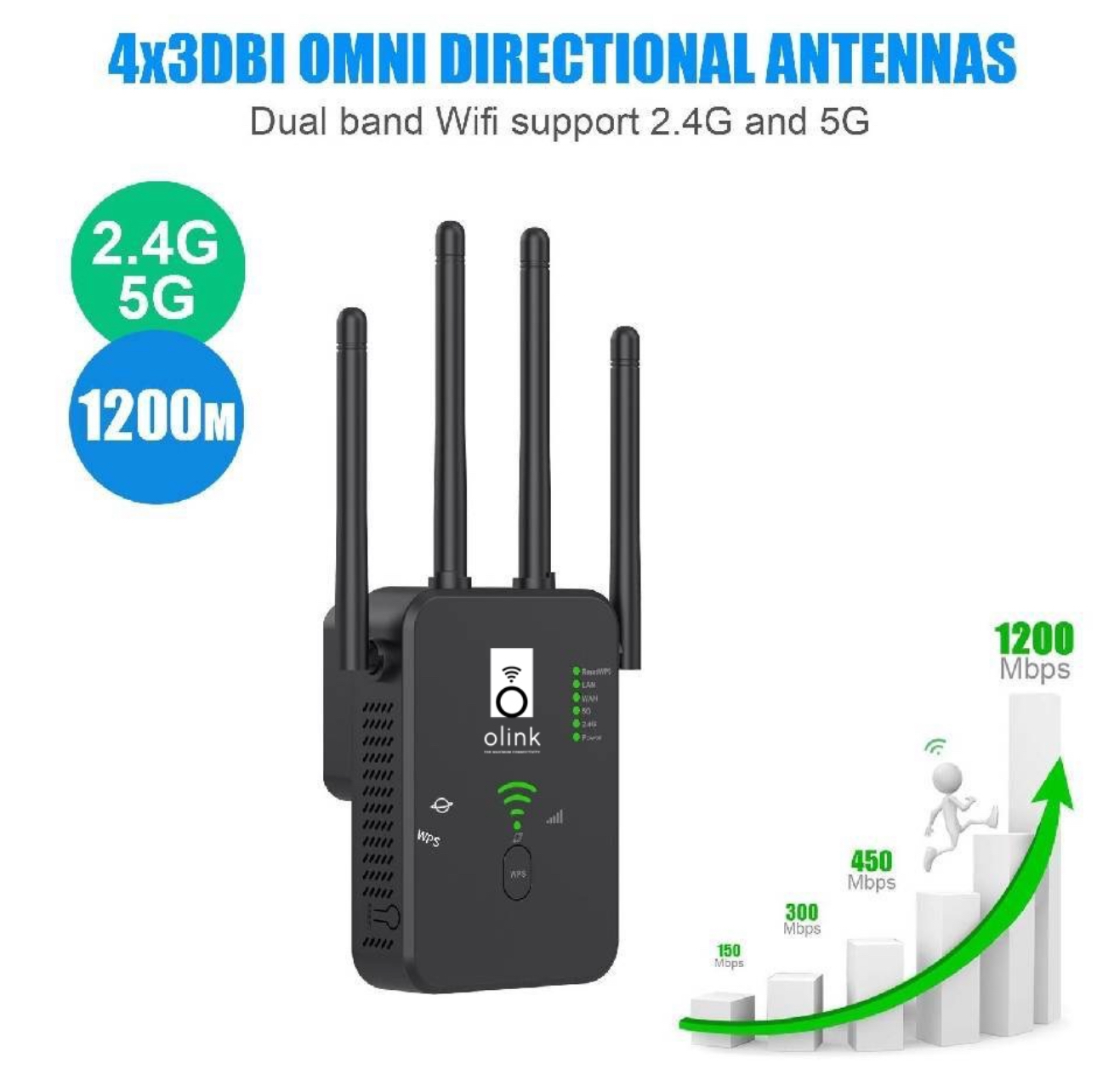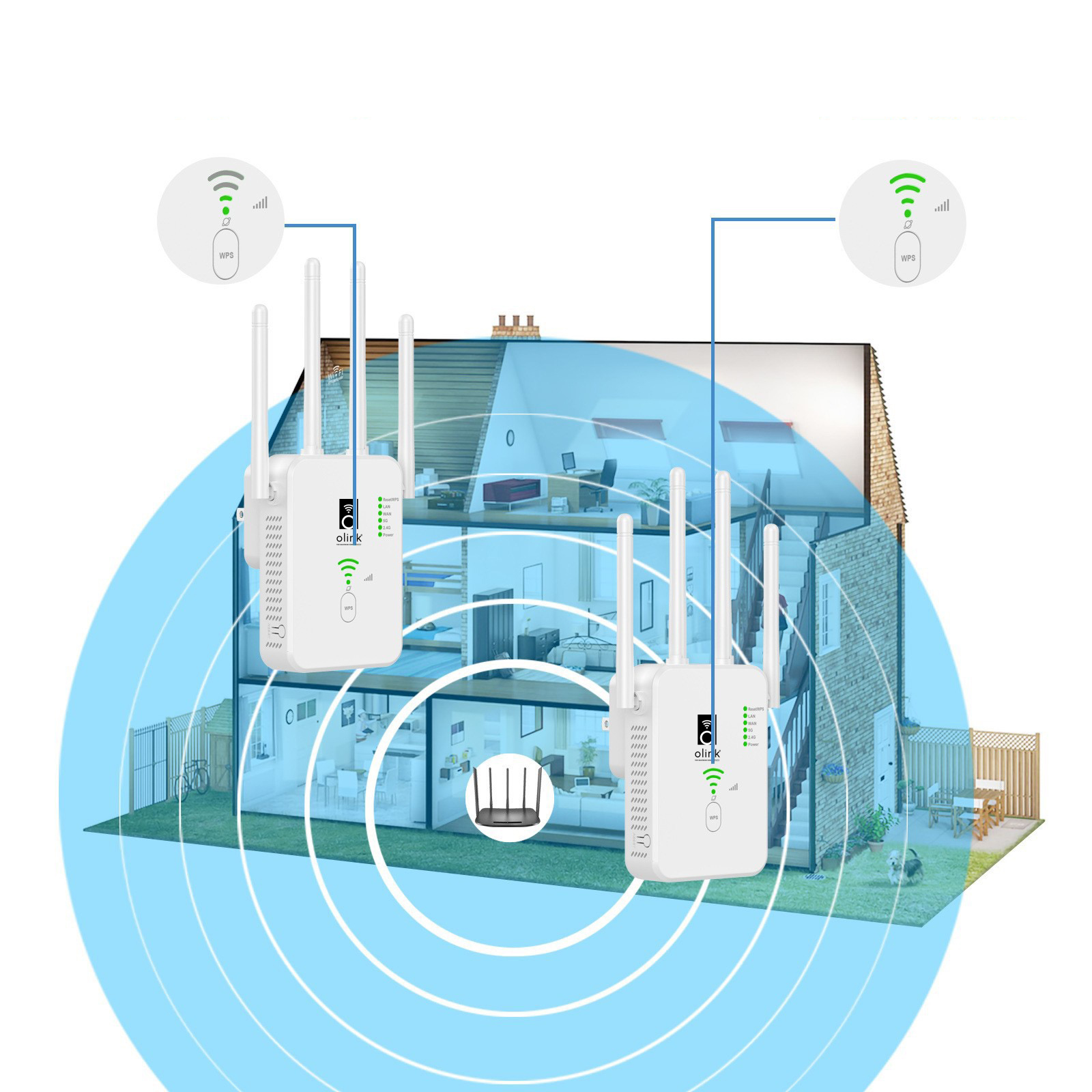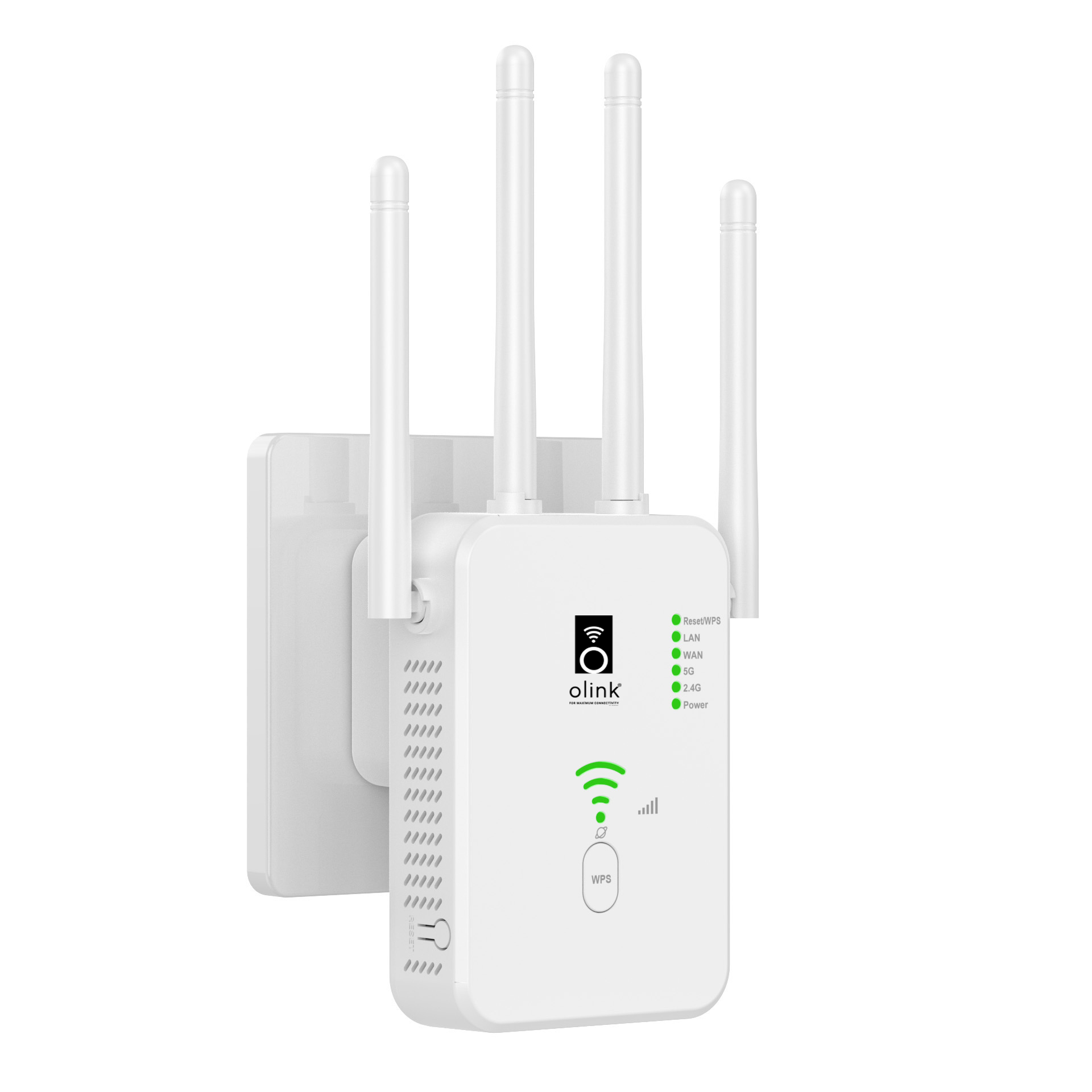 300M wireless repeater CPU: MTK7628NN+MTK7613B Network port: 1*100Mbps Antenna: 4*3dBi gain antenna Frequency band: 2.4GHz+5.8GHz Power supply: 110~240V AC power supply (plug can be customized)