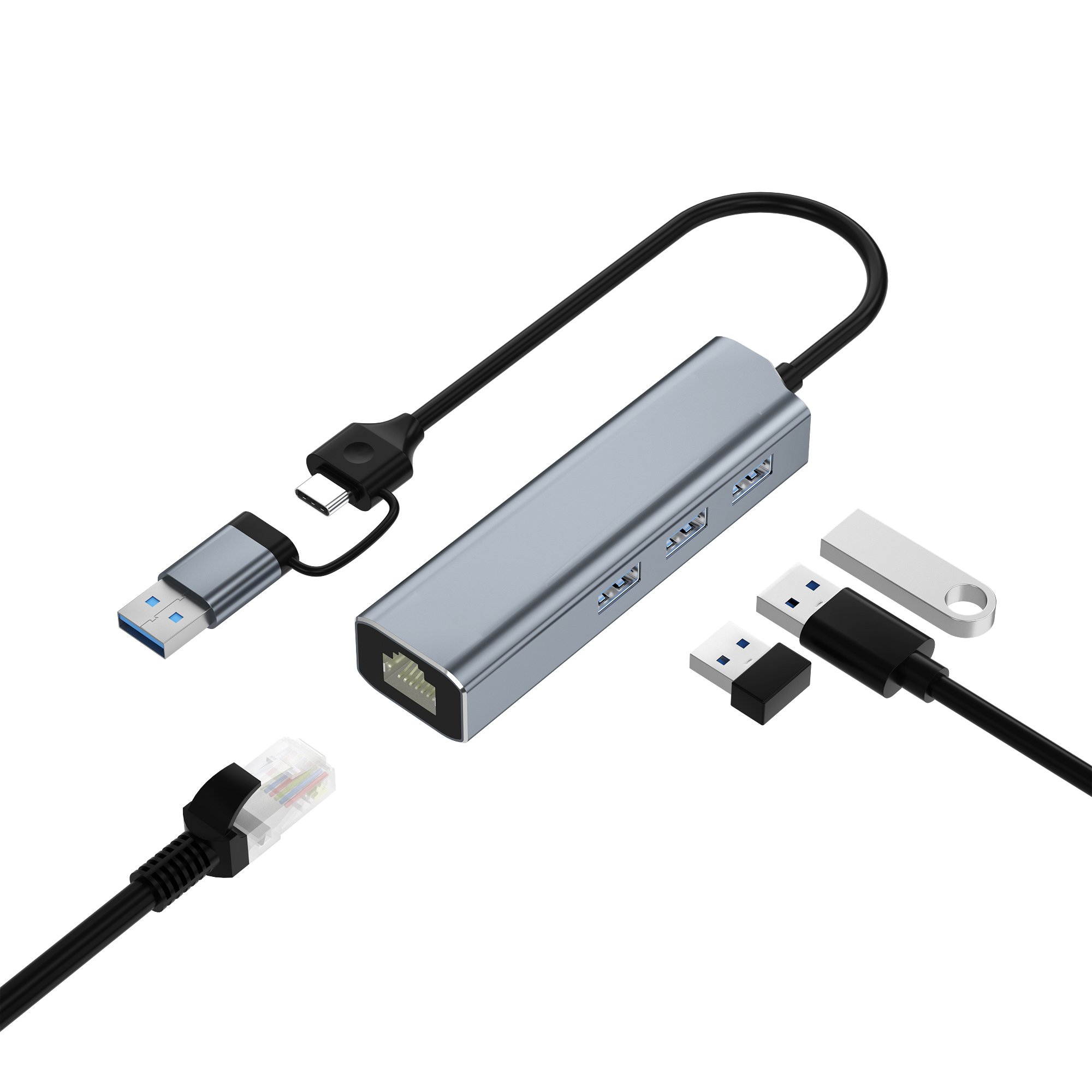 USB-C USB 3.0 to Gigabit Ethernet Adapter, 3-Port USB 3.0 Hub with RJ45 Compatible with MacBook Pro/Air 2023, iPad Pro, iMac, S23, XPS 17, Surface Book 3 and More